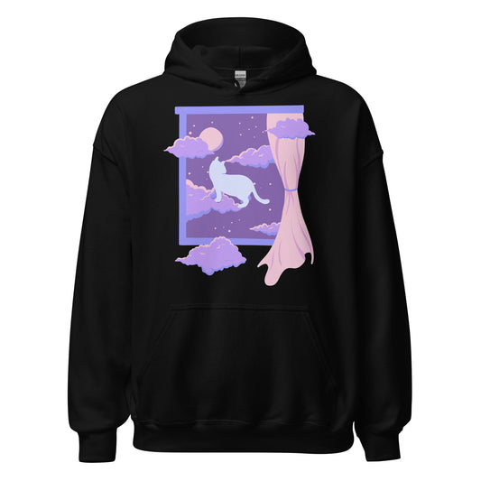 Lo-Fi Katze Im Nachthimmel Kapuzenpullover