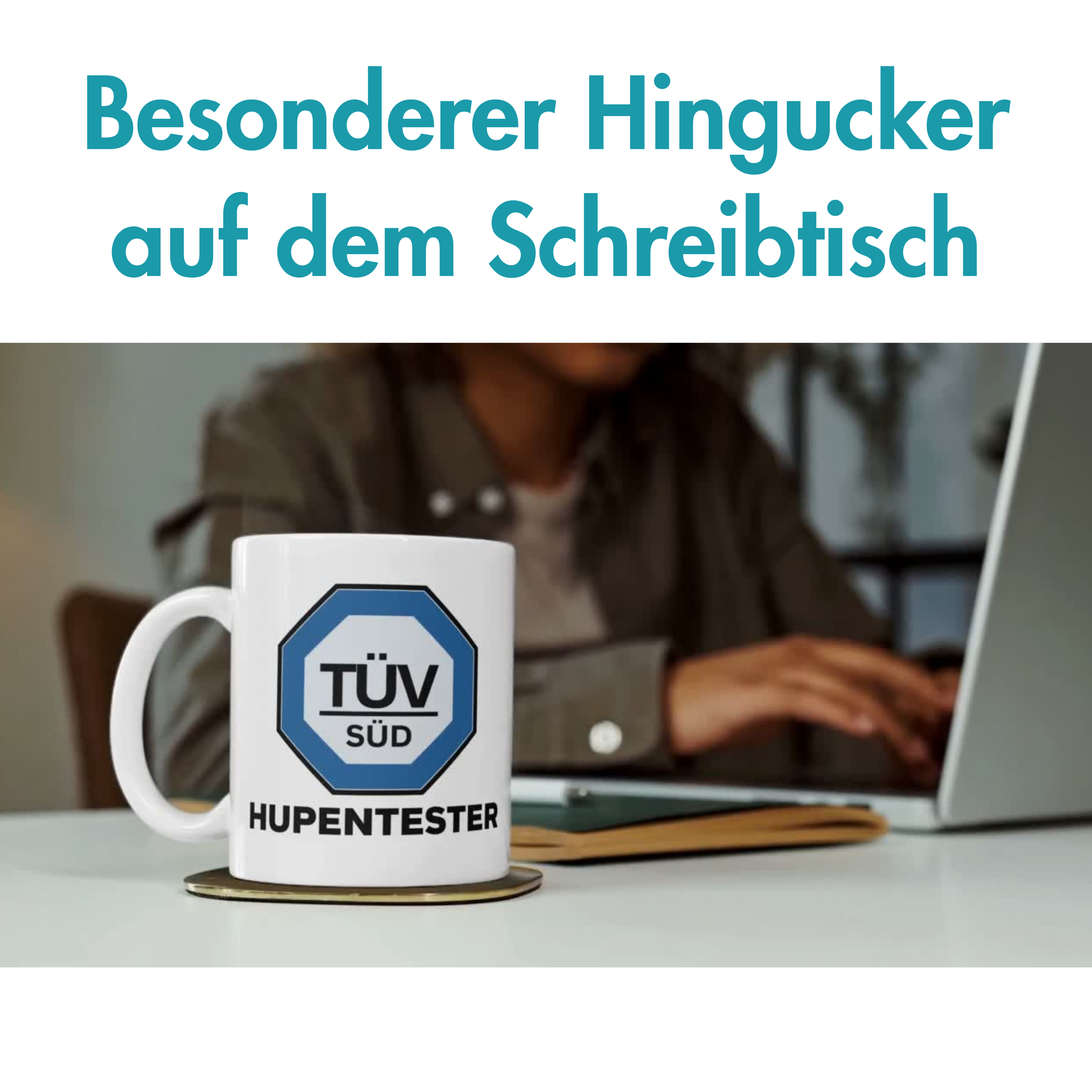 „TÜV Hupentester“ – Die perfekte Tasse für frechen Humor mit Augenzwinkern