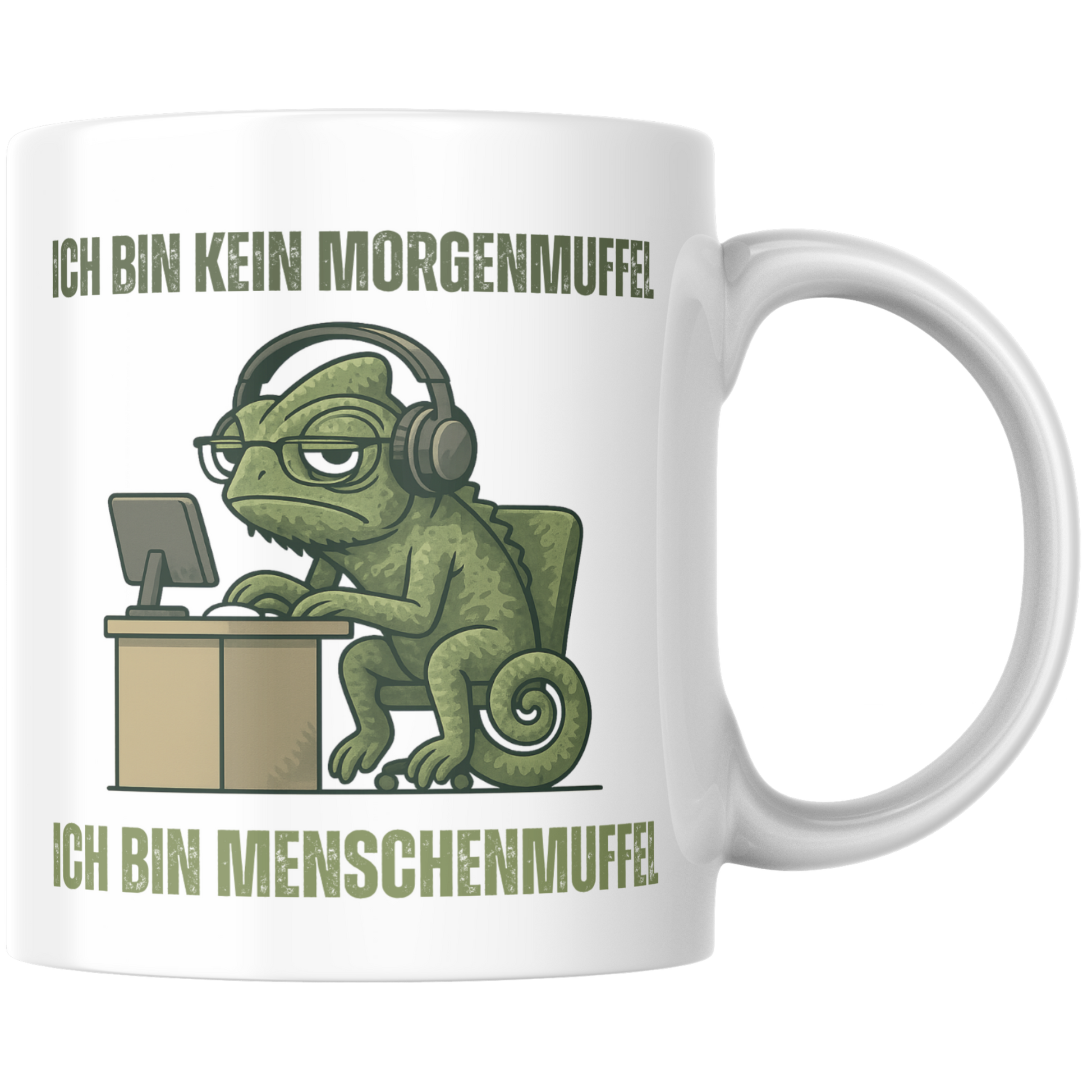 🦎 Ironischer Spruch: „Ich bin kein Morgenmuffel, ich bin Menschenmuffel“ – für alle, die Ruhe vor dem Bürotrubel brauchen.